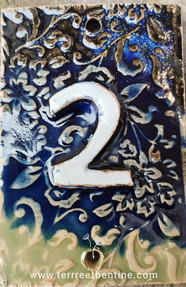 2 Chiffres + motif en bas relief en grès