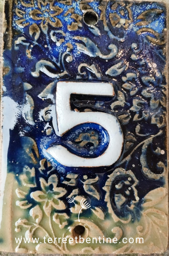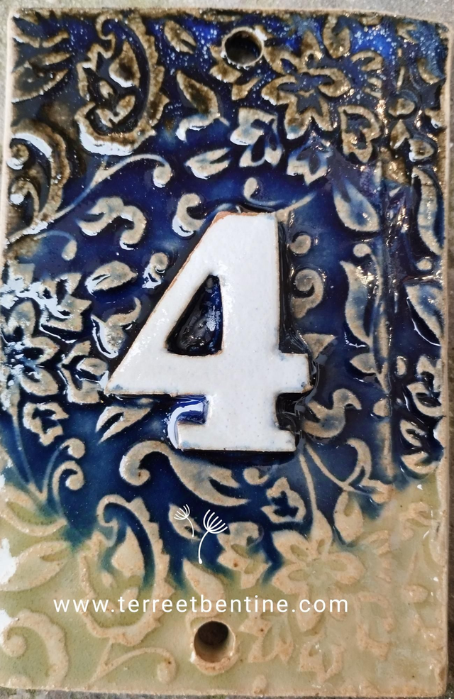1 Chiffre + motif en bas relief en grès