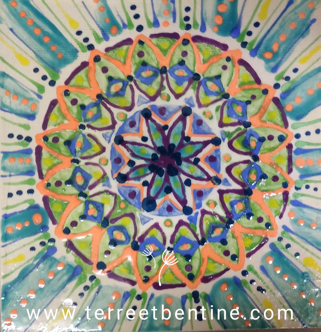 Motif en forme de MANDALA - décoré et peint à la main durant la période du confinement.
