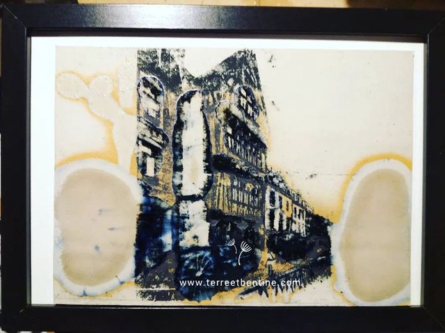 Transfert d'images sur grès porcelainique & émail. Pièce unique format environ 21 x 29.7 + encadrement sur fond blanc ou noir. à préciser