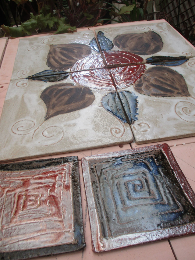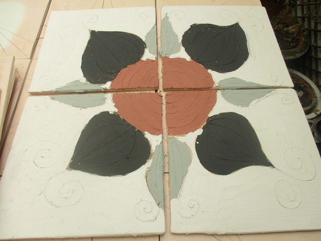 COMPOSITION: Décors floral - 4 carreaux en grès (pour extérieur)